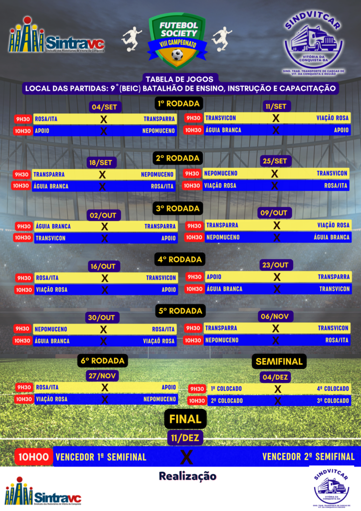 Depois de 02 anos sem acontecer por conta da pandemia, finalmente está de volta no próximo domingo (04), o 8º Campeonato de Futebol Society Sintravc/Sindvitcar.