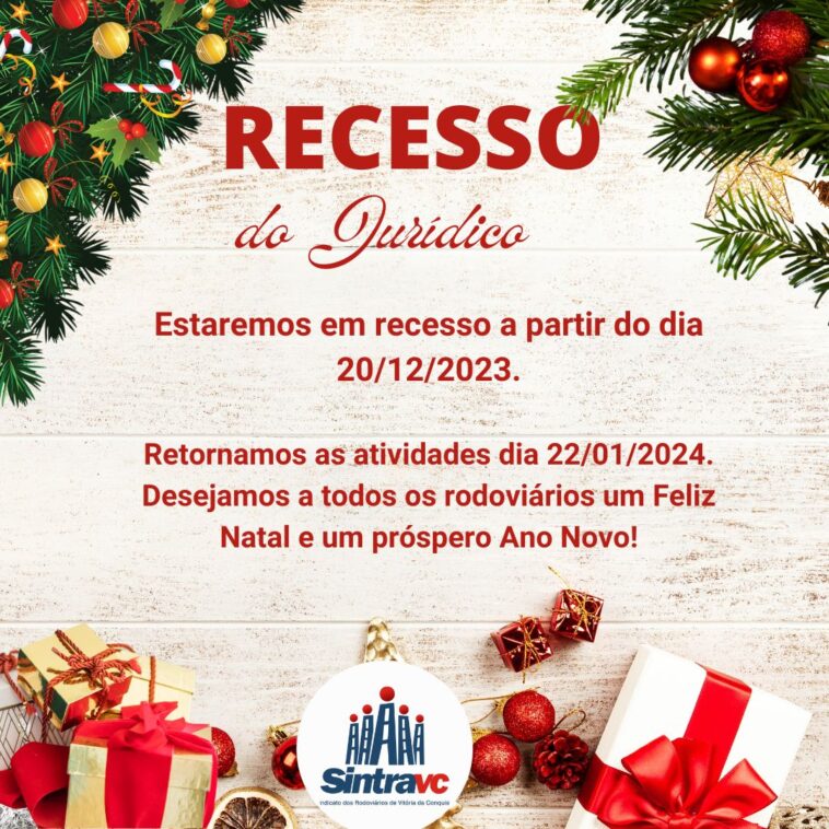 comunicado SINTRAVC : Recesso do Juridico a partir do dia 20 /12/ 2023.