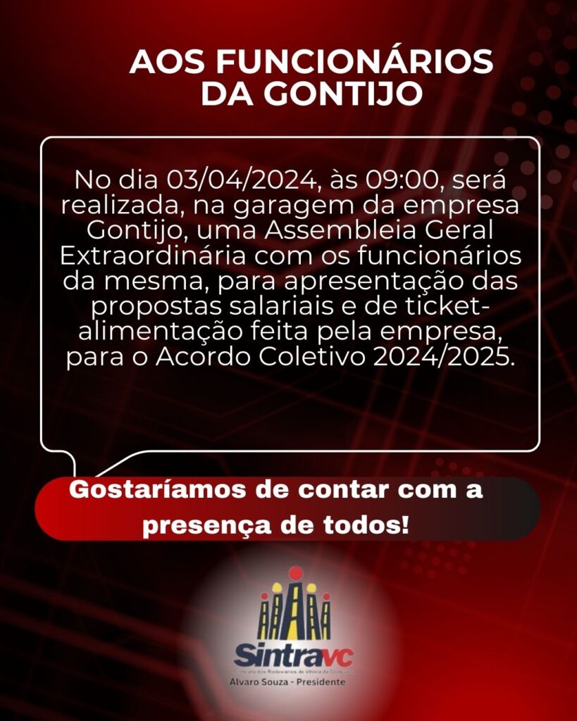 Foi realizada na garagem da empresa Gontijo, uma Assembleia Geral Extraordinária