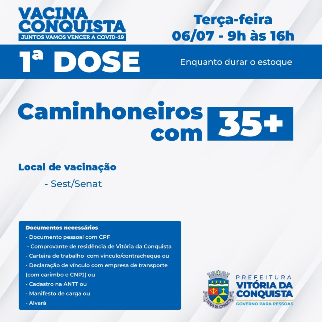 LEIA MAISVacinação nesta terça (05) será para caminhoneiros com 35 anos ou mais