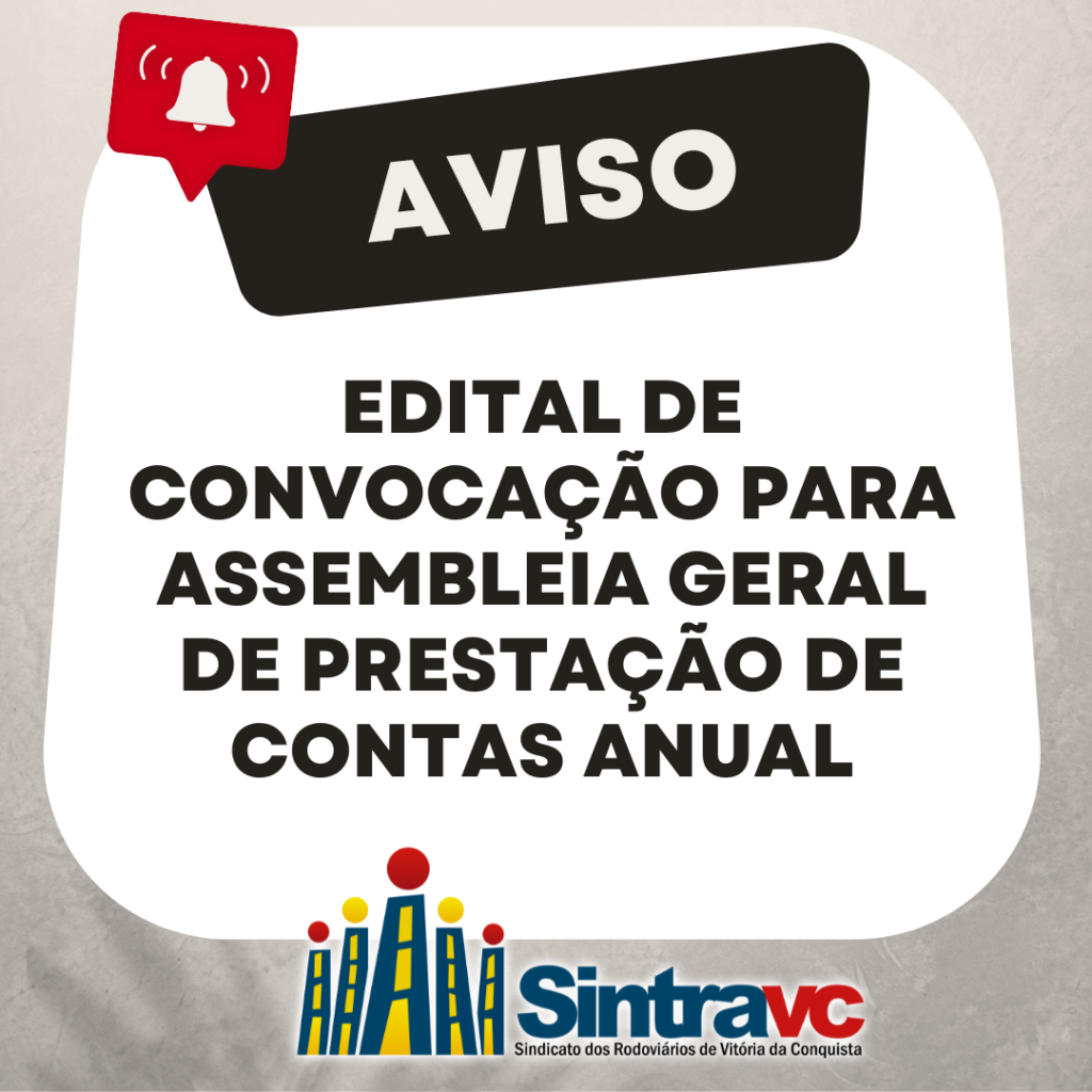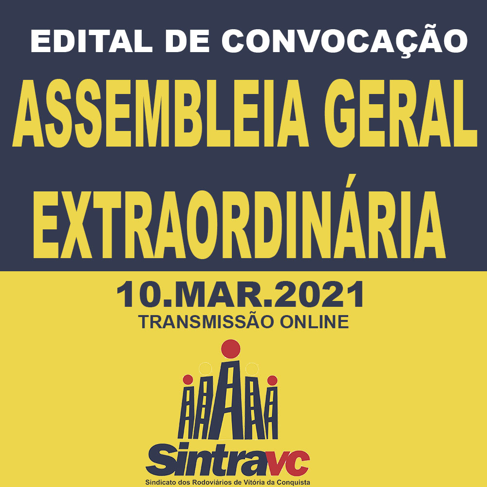 LEIA MAISEDITAL DE CONVOCAÇÃO : Assembleia Geral Extraordinária, que será realizada no dia 07 de MARÇO de 2024, quinta-feira, na SEDE DO SINDICATO – SINTRAVC